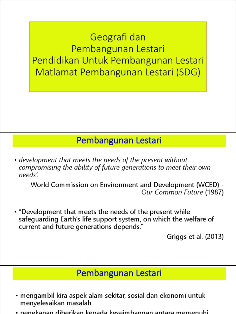 Geografi Dan Pembangunan Lestari Pendidikan Untuk Pembangunan Lestari Matlamat Pembangunan Lestari Sdg
