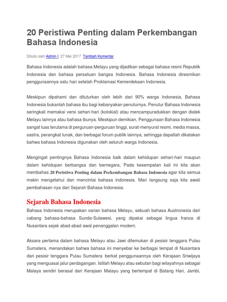 20 Peristiwa Penting Dalam Perkembangan Bahasa Indonesia