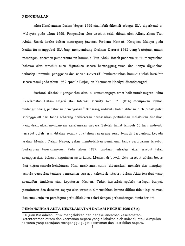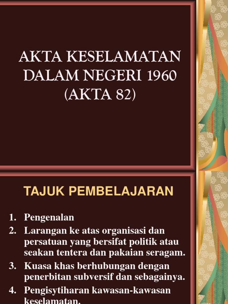 Akta keselamatan dalam negeri 1960. Akta keselamatan dalam negeri 1960. Penjelasan mengenai akta keselamatan dalam negeri isa 1960 oleh. Dalam negeri 1960 akta 82 tajuk pembelajaran 1.
