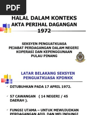 Halal Dalam Konteks Akta Perihal Dagangan 1972