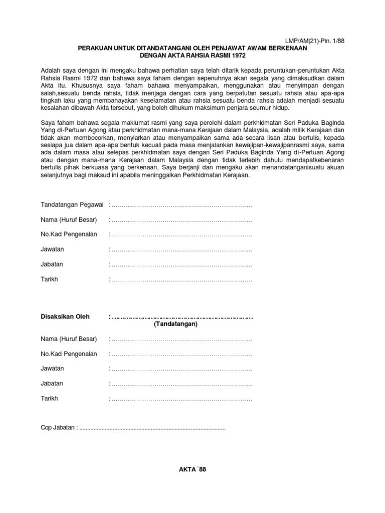 Akta Rahsia Rasmi 1972 Akta 88 Pnmb2u
