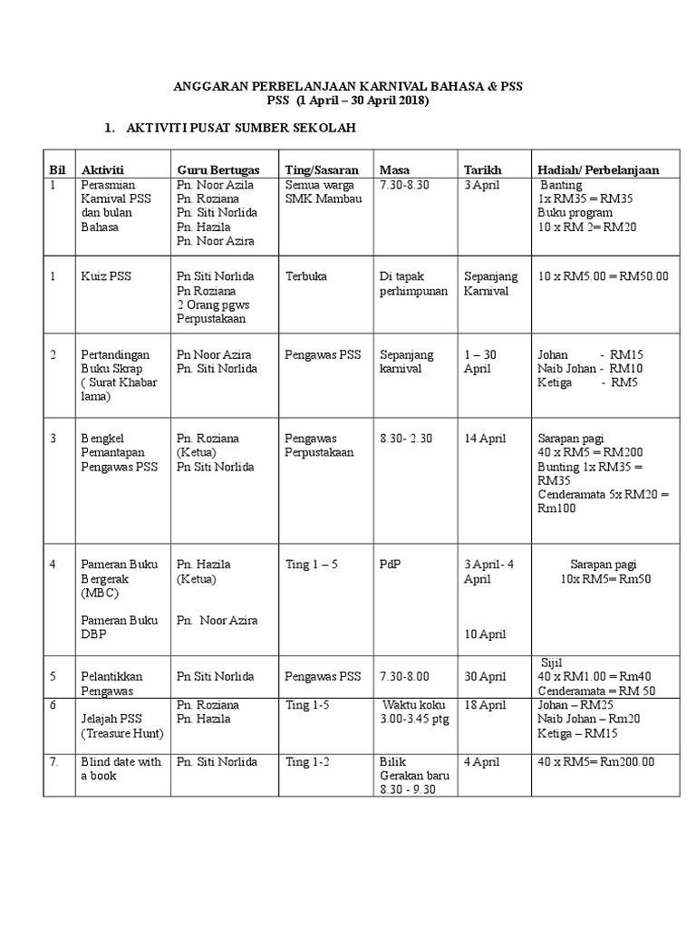 Takwim aktiviti pusat sumber. Aktiviti tahunan kelab pusat sumber sekolah. Mesyuarat jawatan kuasa kerja pss. Aktiviti pusat sumber sekolah.