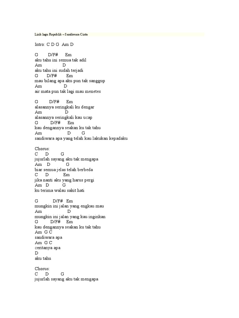 Chord Gitar Dan Lirik Lagu Repvblik Sandiwara Cinta Docx
