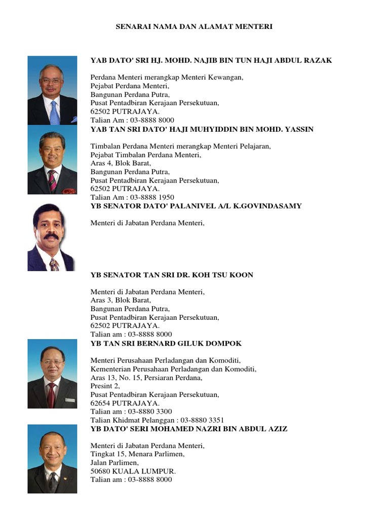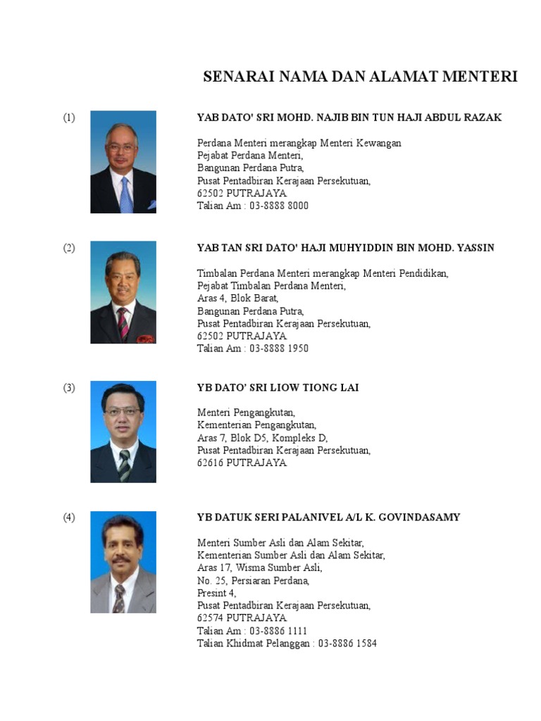 The Kalingga Warrior Senarai Penuh Alamat Menteri Kabinet Kabinet2014