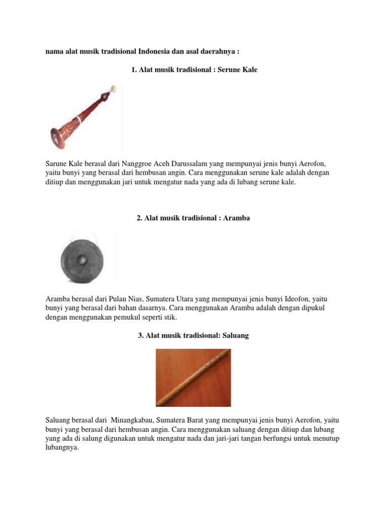 11 Alat Musik Tradisional Di Indonesia Beserta Asal Daerahnya Pdf Document