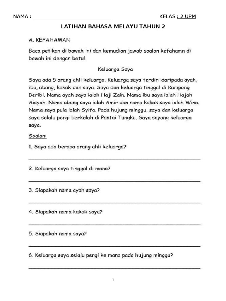 Latihan Pemahaman Bahasa Melayu Sesuai Untuk Murid Tahap 1 Tahun 1 2 3 Mycikgu Net