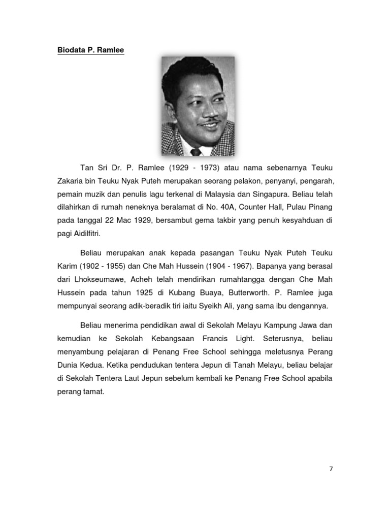 Nostalgiapramlee Semua Tentang P Ramlee Biodata P Ramlee Tan Sri P Ramlee