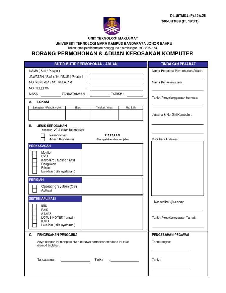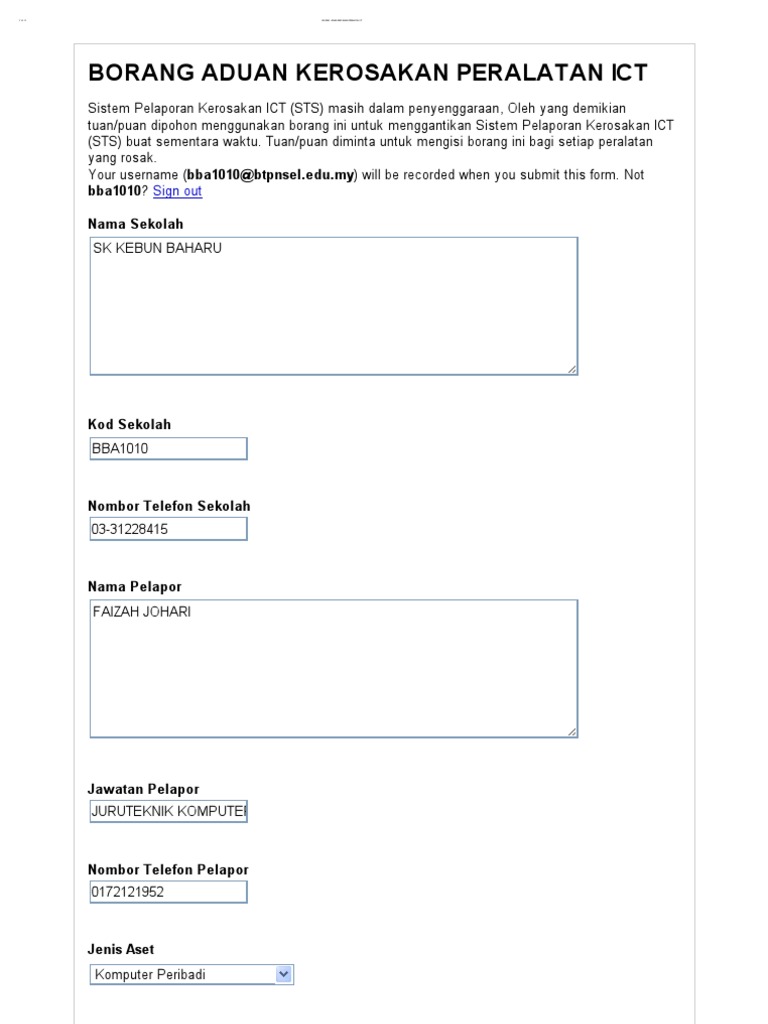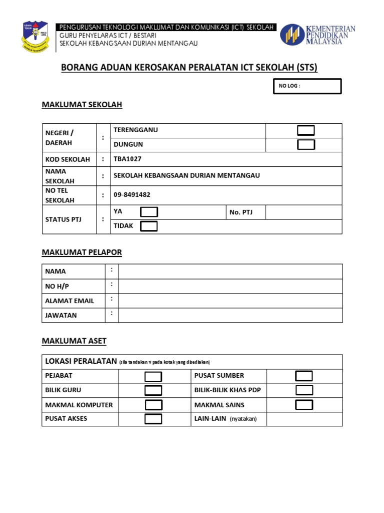 Contoh Borang Aduan Kerosakan Peralatan Ict 1 Pdf