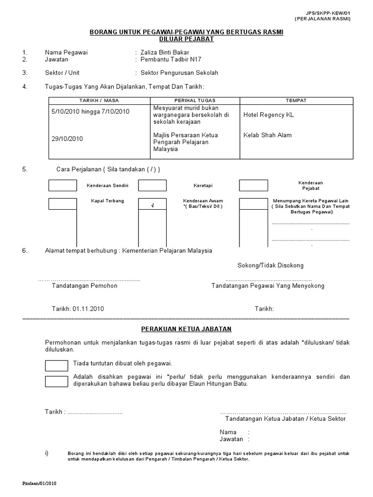 Borang Kebenaran Keluar Pejabat Atas Urusan Rasmi