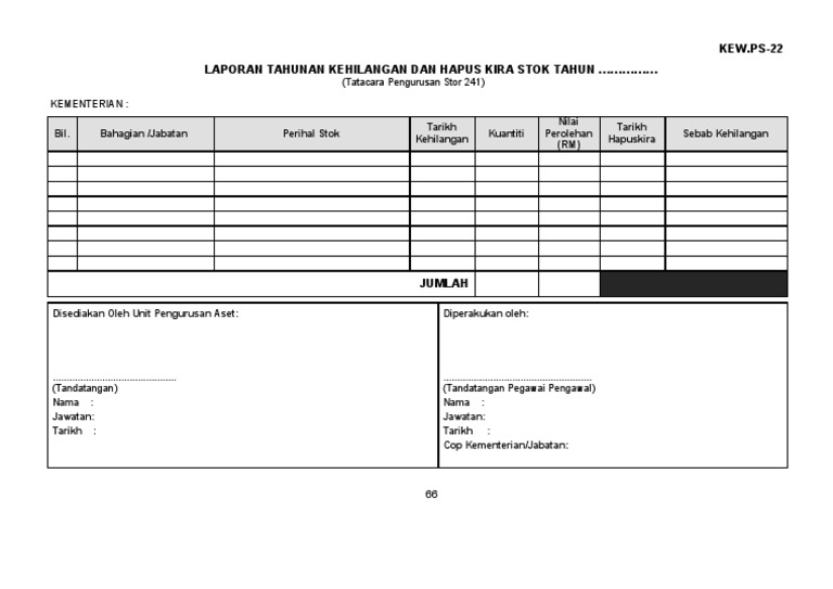 Kew Ps 22 Baru Doc Kew Ps 22 Laporan Tahunan Kehilangan Dan Hapus Kira Stok Tahun U2026 U20262018 U2026 U2026 U2026 Tatacara Pengurusan Stor 241 Kementerian Sjk T Course Hero