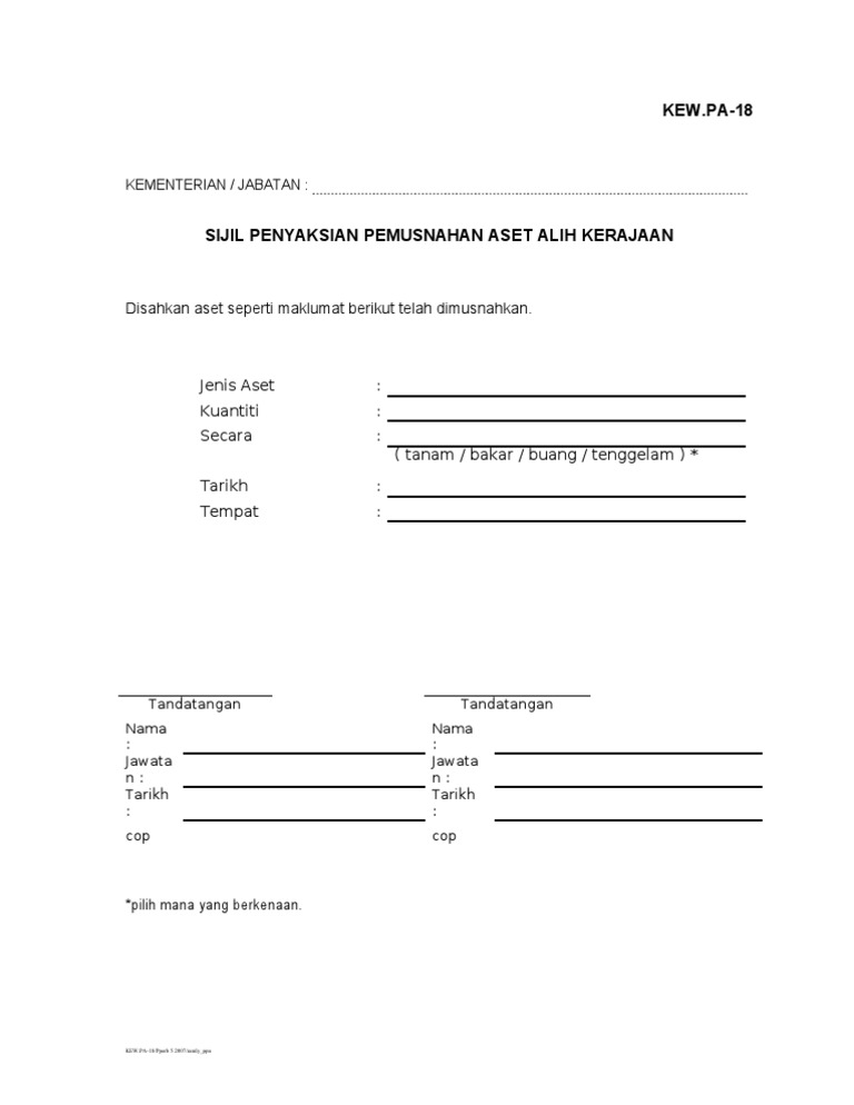 Kew Pa 18 Sijil Penyaksian Pemusnahan
