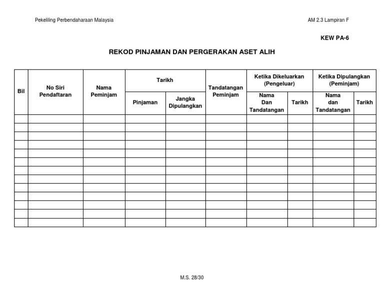 Kew Pa 6 Daftar Pergerakan Harta Modal Dan Inventori