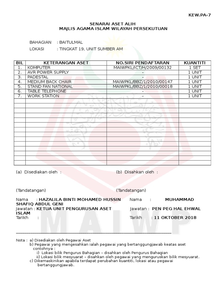 7 Kew Pa 7 Senarai Aset Di Lokasi Kelas 2i Doc Kew Pa 7 Senarai Aset Alih Kerajaan Bahagian Smk Asyakirin Bintulu Lokasi Kelas 21 Bil Keterangan Aset Course Hero