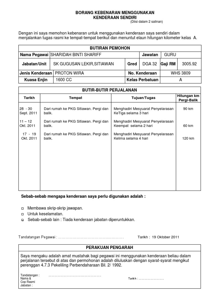 Permohonan Menggunakan Kenderaan Sendiri Docx