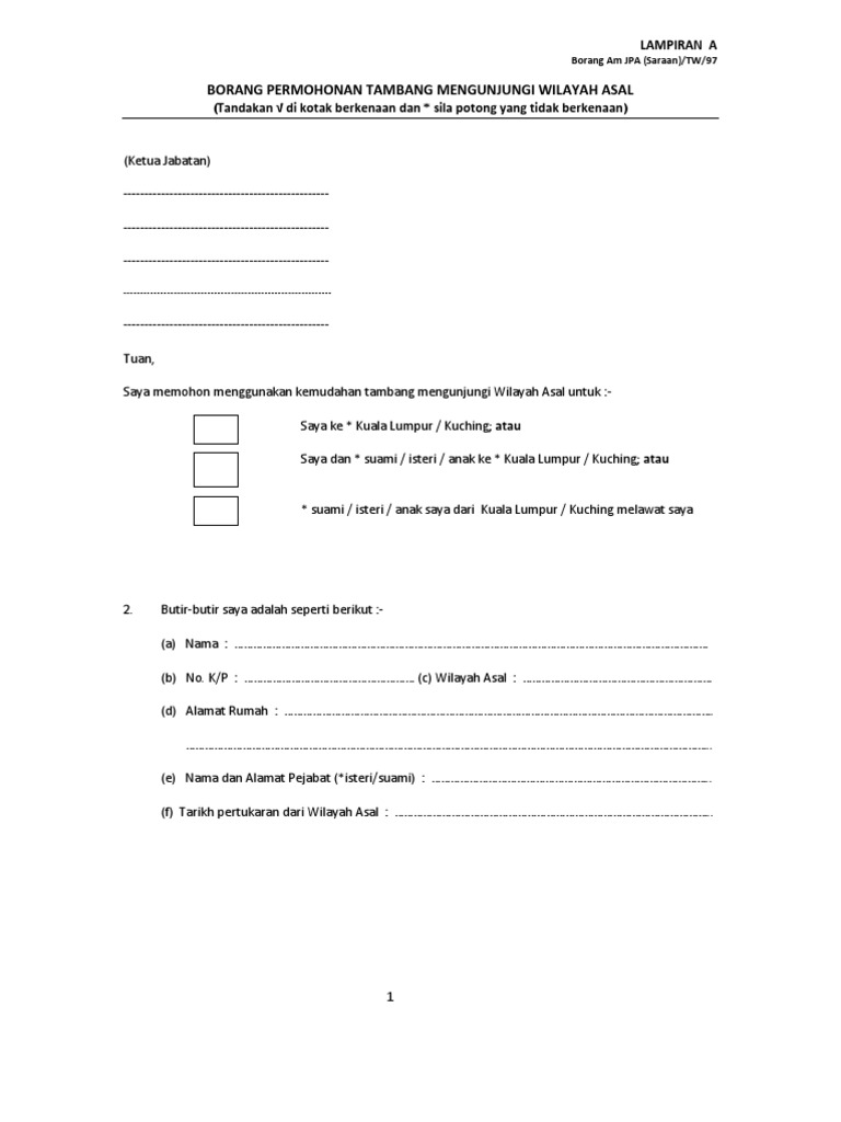 Borang Permohonan Kemudahan Tambang Mengunjungi Wilayah Asal Pdf Document