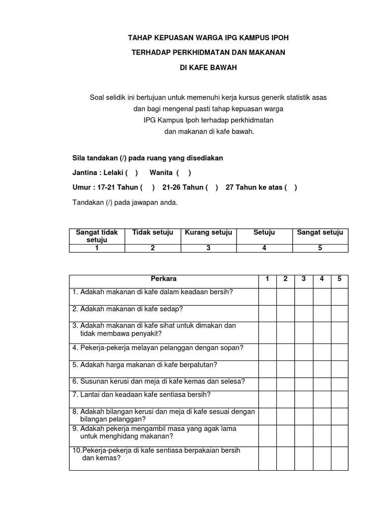 Borang Soal Selidik Kepuasan Pelanggan Doc