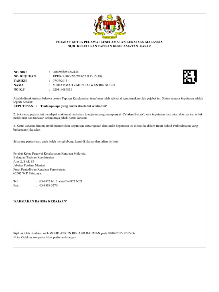 Borang Tapisan Keselamatan Pdf Document
