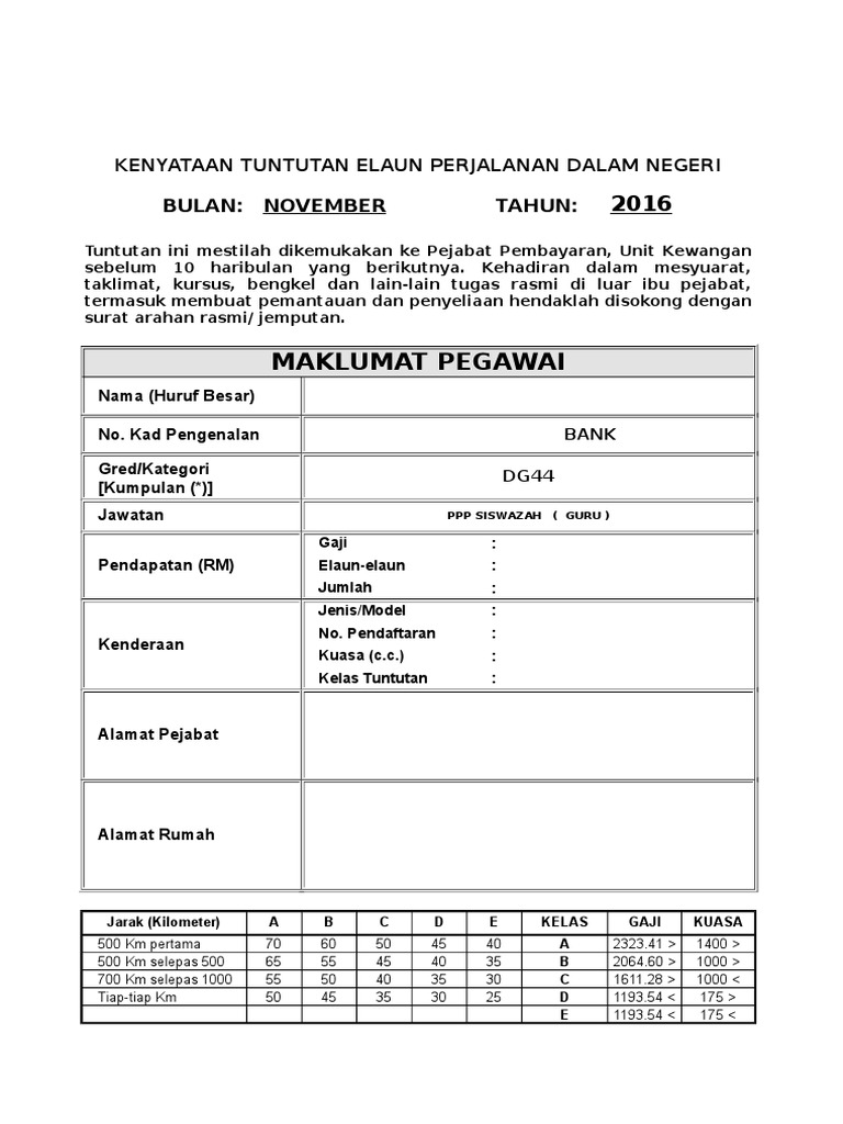 Borang Tuntutan Perjalanan Untuk Guru