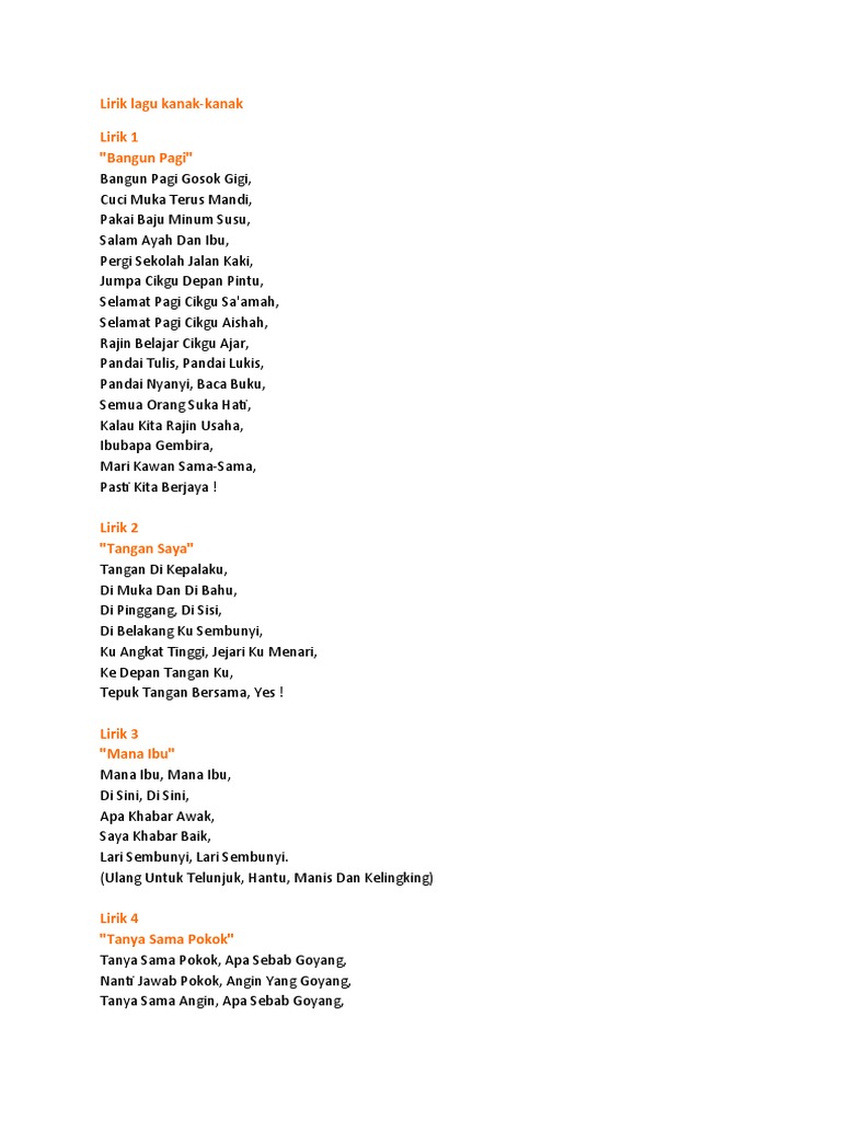 Doc Lirik Lagu Bangun Pagi Lagu Kanak Kanak Muhd Naim Academia Edu