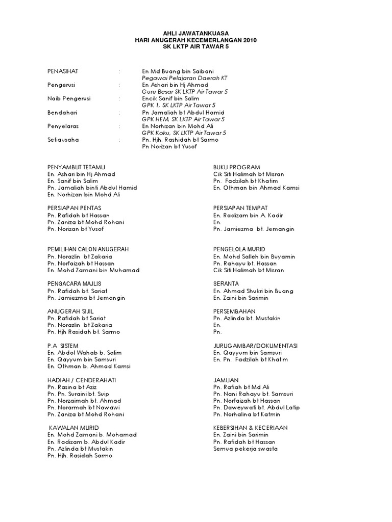 Contoh Buku Program Hari Kualiti Jawat Koso
