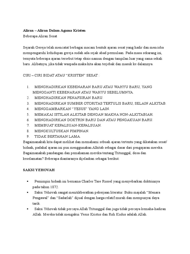 Doc Perbedaan Agama Kristen Dengan Bidat Kristen Gerakan Mormon Saksi Yehova Children Of God Haposan Felix Academia Edu