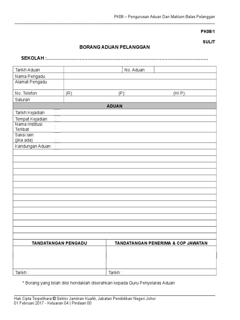 Borang Aduan Pelanggan Pdf Document