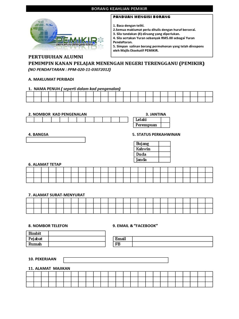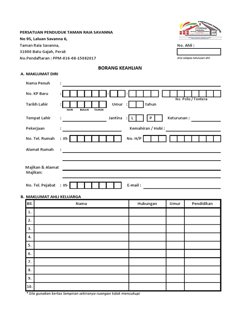 Borang Keahlian Persatuan Penduduk Tcs Borang Keahlian