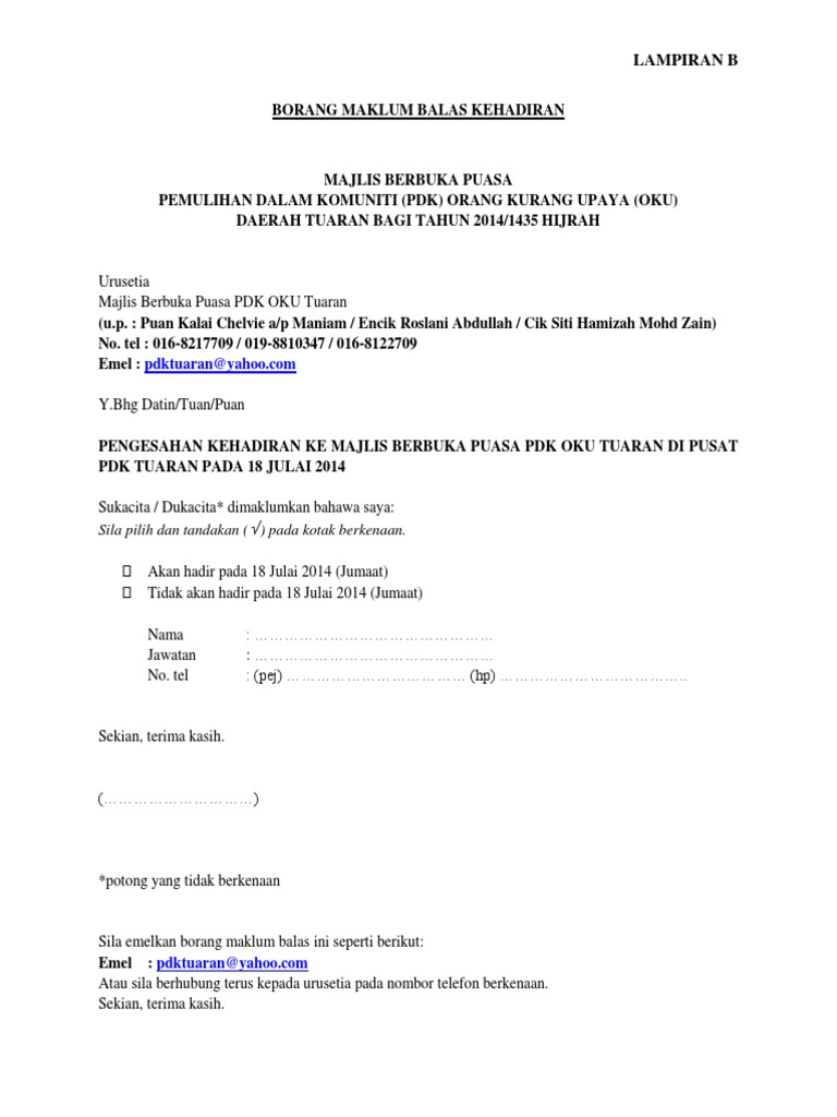 Contoh Borang Maklum Balas Kehadiran