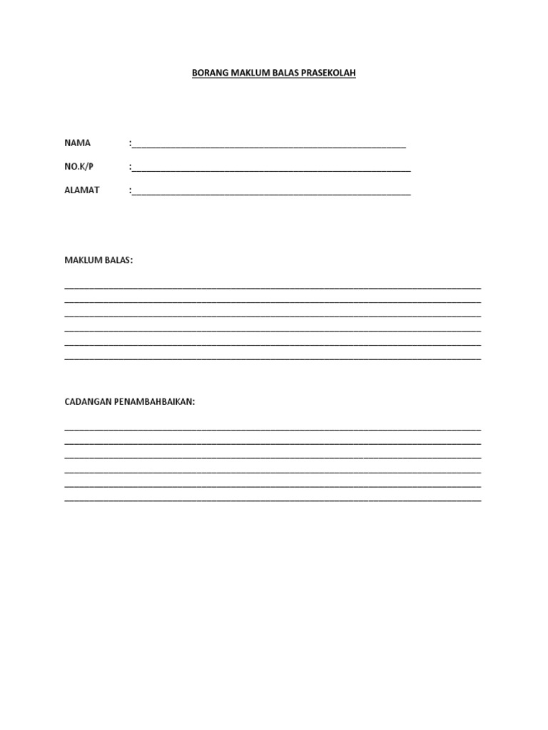 Borang Maklum Balas Prasekolah Ibu Bapa