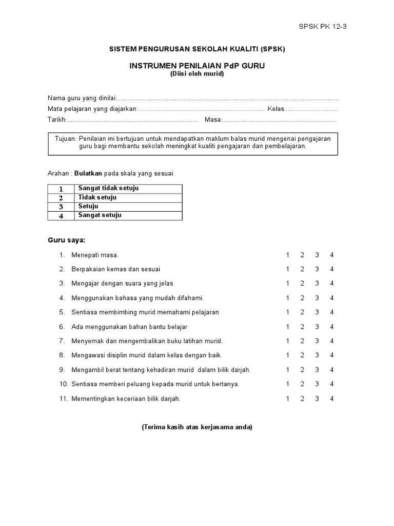 Instrumen Penilaian Pdp Guru Oleh Murid Doc