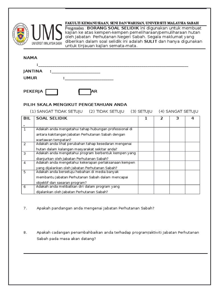 Contoh Borang Soal Selidik Tesis Pdf Kunci Ujian