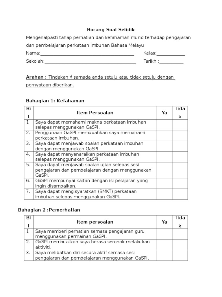 Contoh Borang Soal Selidik Masalah Disiplin Pelajar Cute766