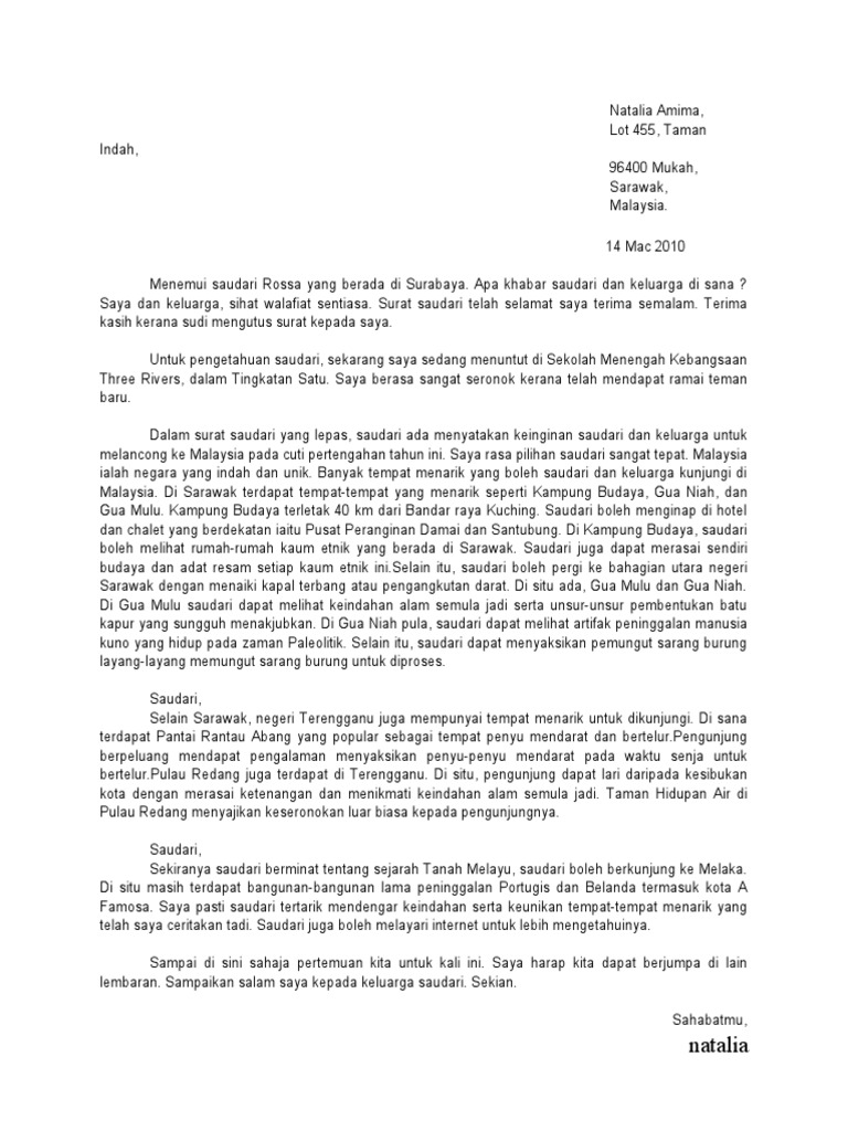 Contoh Karangan Surat Kiriman Tidak Rasmi 16 Wall Ppx