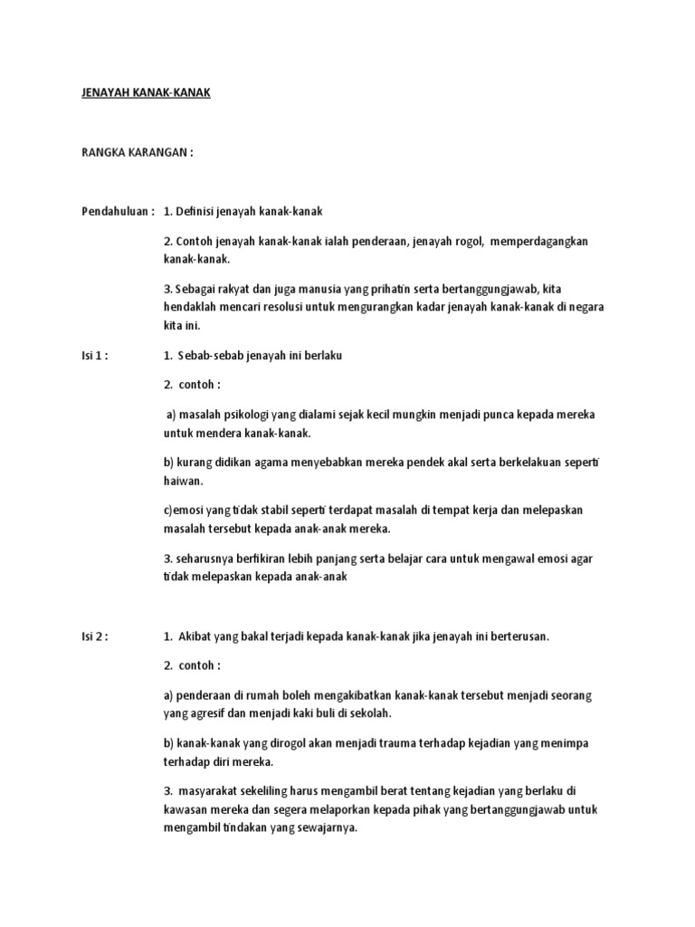 Contoh Jenayah Kanak Kanak