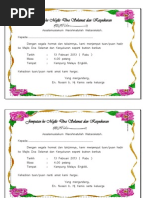 Jemputan Majlis Kesyukuran Dan Doa Selamat Doc