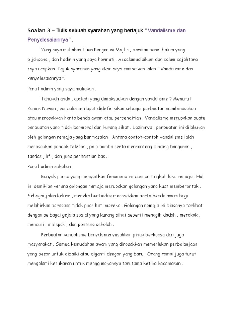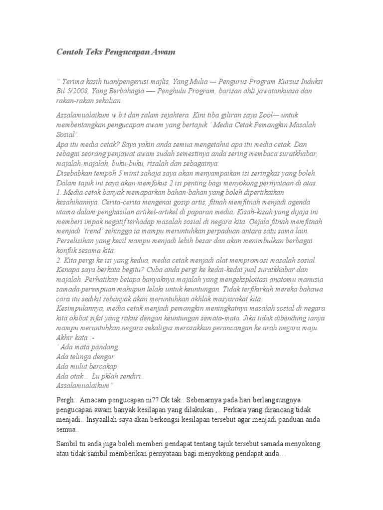 Contoh Karangan Contoh Teks Pengucapan Awam