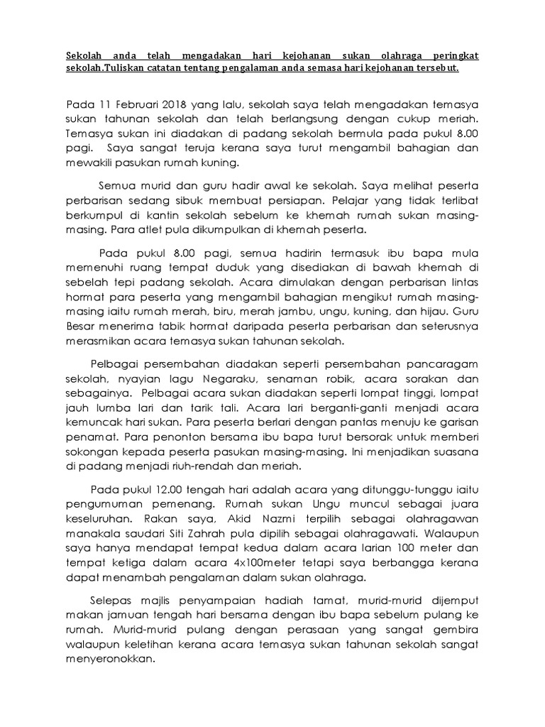 Contoh Karangan Hari Sukan Rasmi F