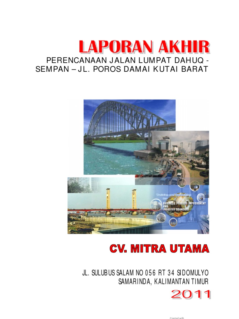 Laporan Akhir Pengawasan Teknis Peningkatan Jalan Dan Jembatan Wilayah Barat Iv Sipilpedia