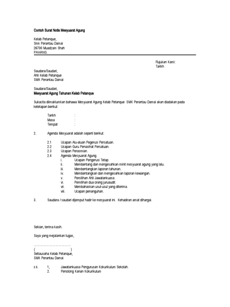 Semua pegawai boleh dipilih semula setiap tahun. Mesyuarat agung tahunan perlu diadakan pada setiap sesi tahun dan bahagian hal ehwal pelajar bhep akan menyelaras tarikh untuk mengadakan mesyuarat agung kepada semua persatuan kelab. Ads 5 contoh surat notis mesyuarat agung. Mesyuarat agung tahunan ppm 2016 1 minit mesyuarat agung tahunan persatuan pustakawan malaysia ppm tahun 2014 2015 tarikh.