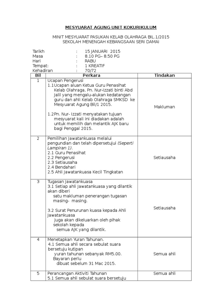 Koleksi Contoh Minit Mesyuarat Agung Tahunan Persatuan Download Contoh Skripsi Pertanian