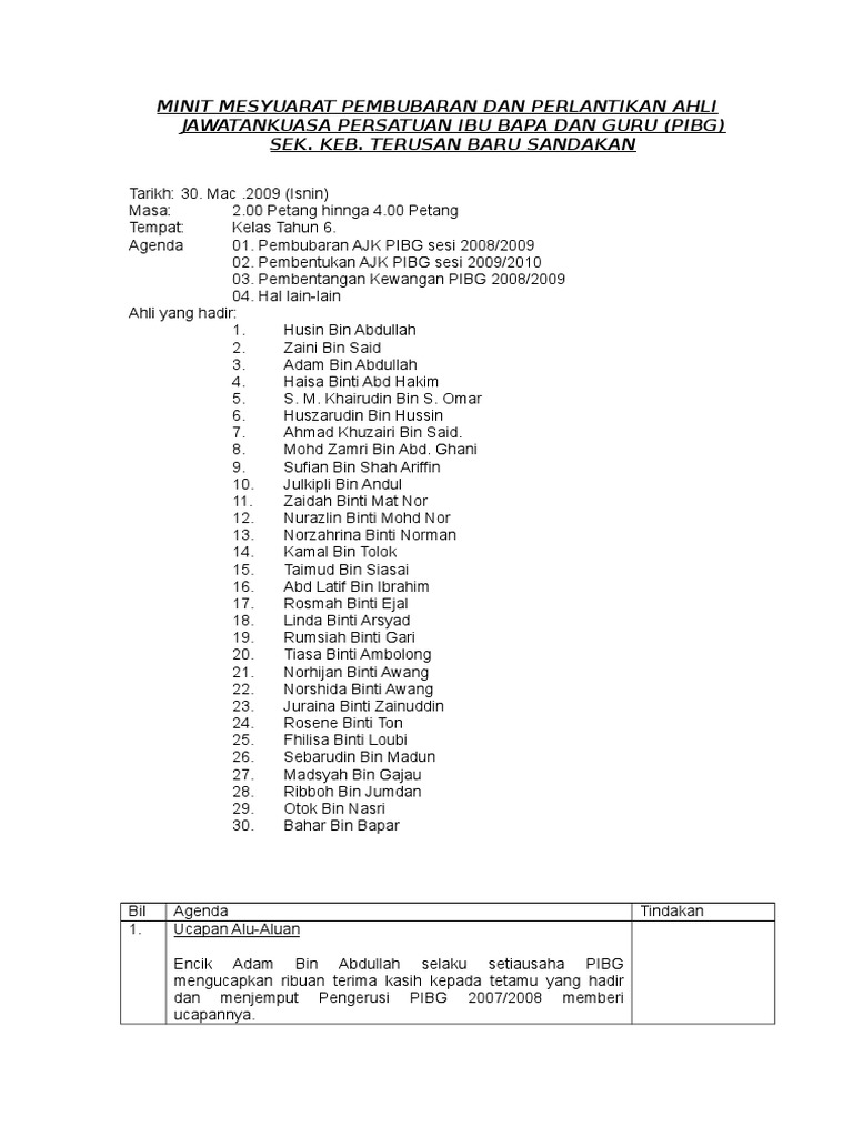 Minit Mesyuarat Pembubaran Dan Perlantikan Ahli Jawatankuasa Persatuan Ibu Bapa Dan Guru Doc