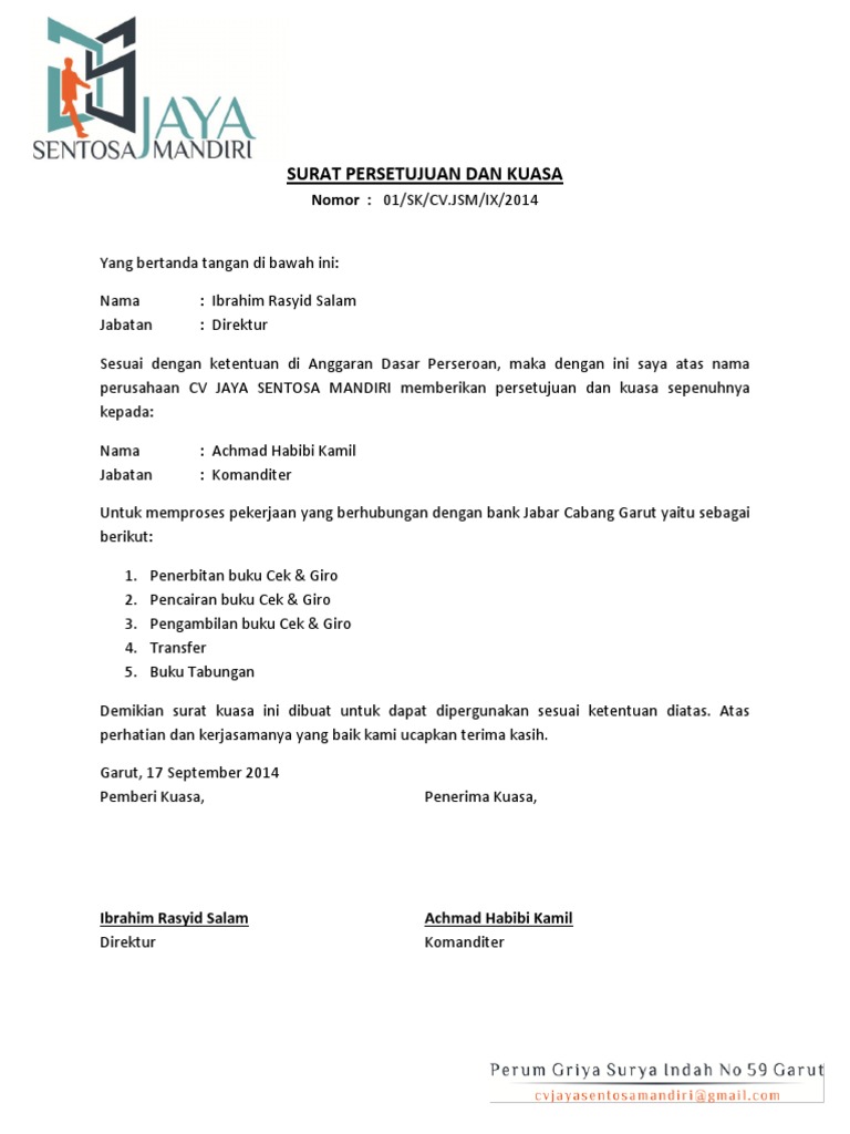 Contoh Surat Kuasa Pengambilan Uang Di Bank Mandiri