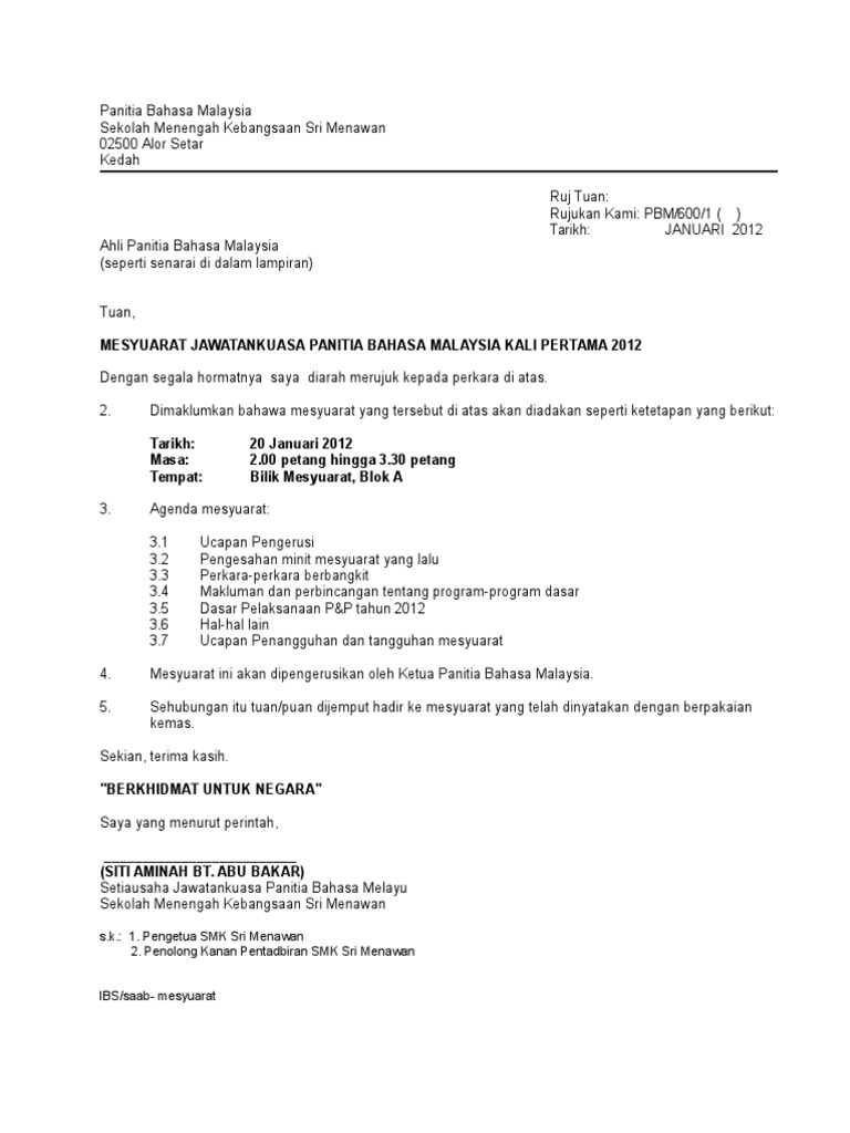 Doc Contoh Surat Panggilan Mesyuarat Adibah Aqilah Academia Edu