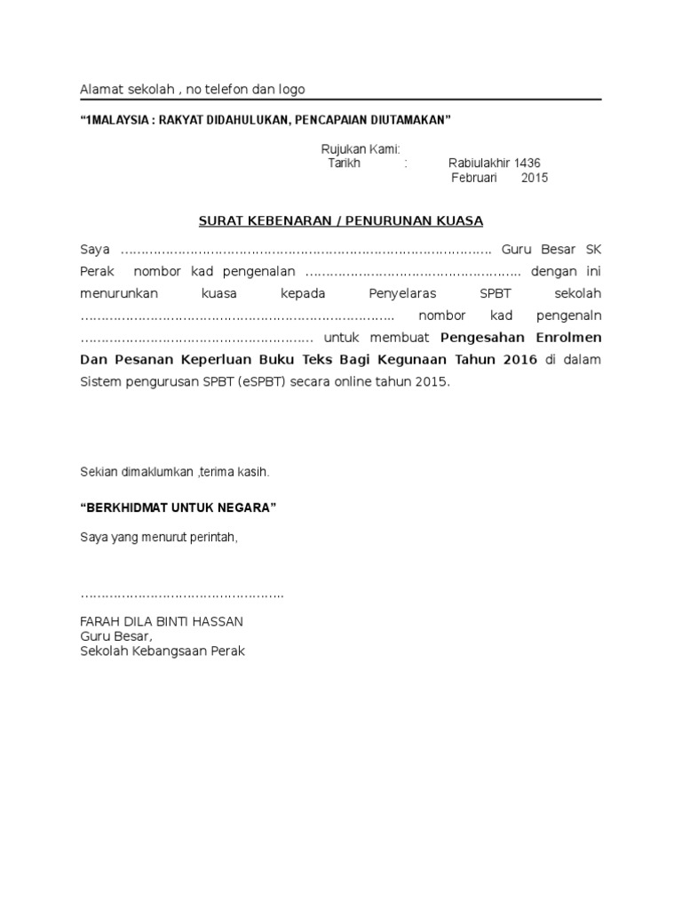 Contoh Surat Penting Lampiran 11 Contoh Surat Penurunan Kuasa Pengetua