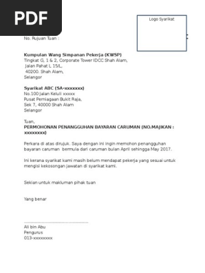 Contoh Surat Permohonan Pinjaman Wang Dari Syarikat
