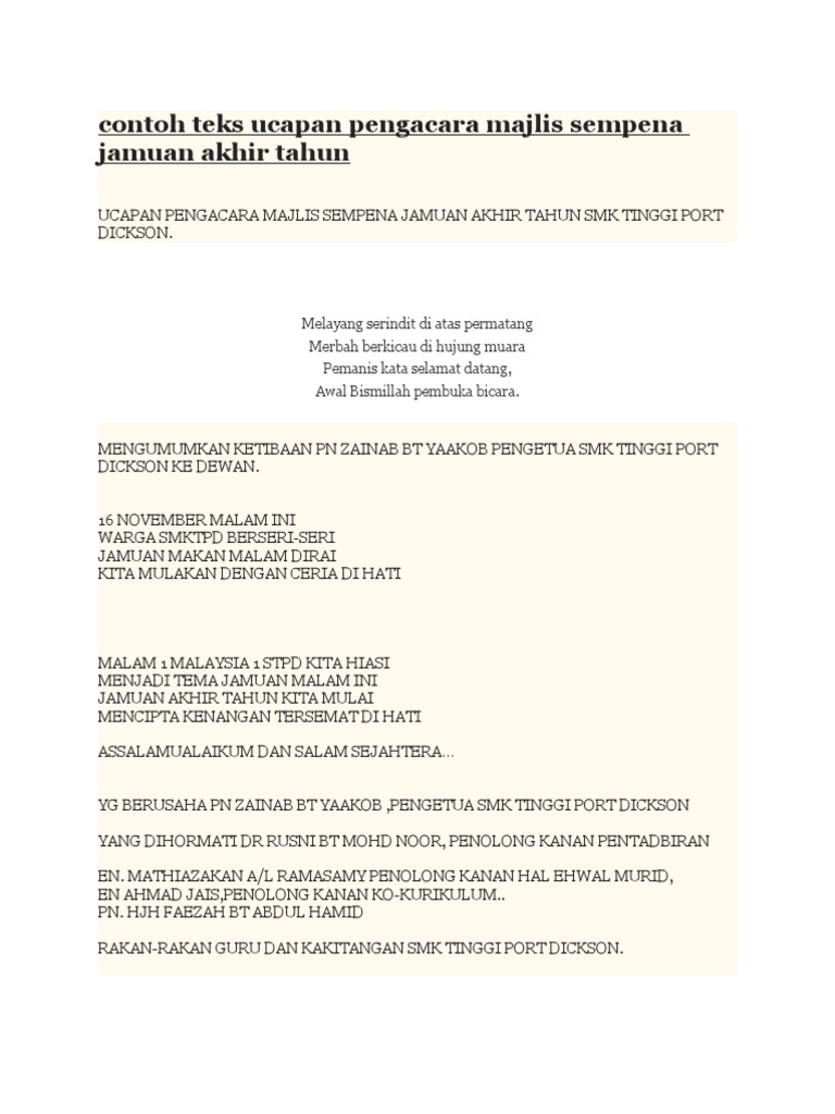 Doc Contoh Teks Ucapan Pengacara Majlis Sempena Jamuan Saadiah M Academia Edu