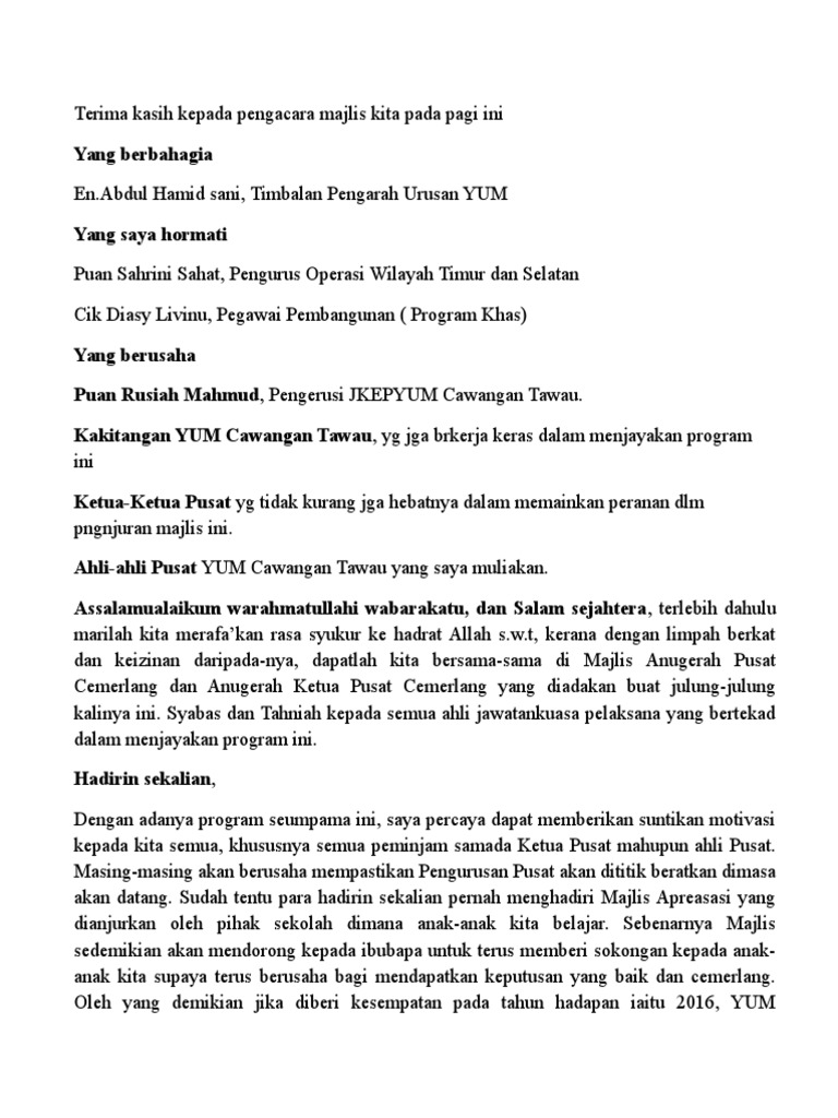Teks Ucapan Pengacara Majlis