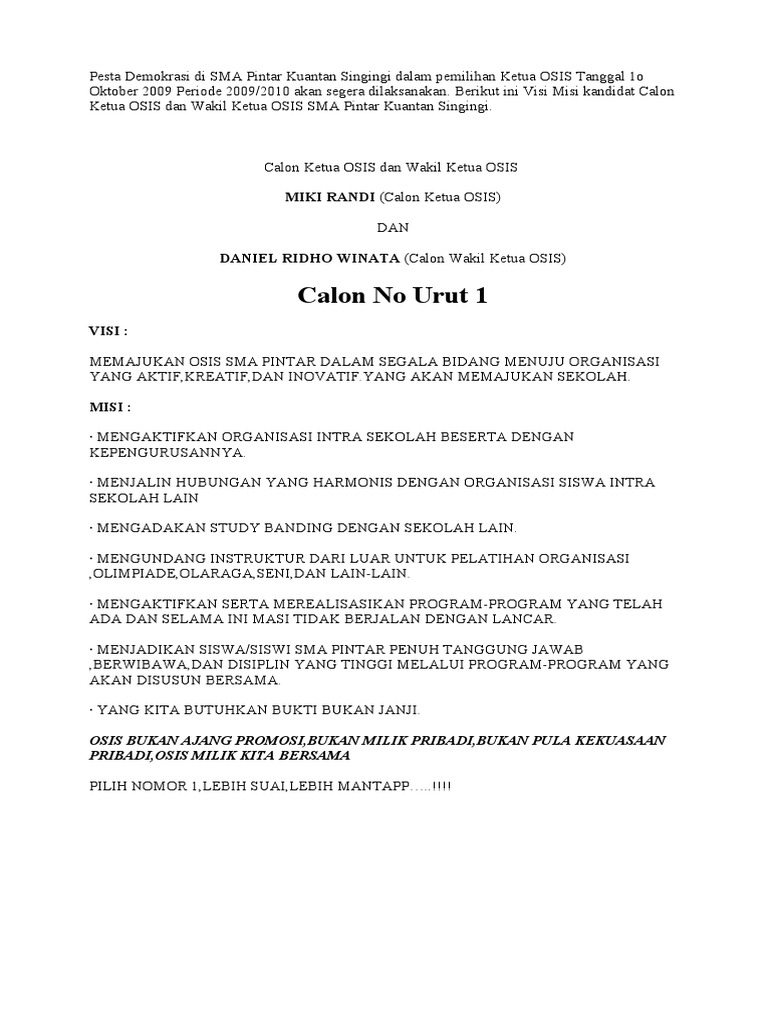 Visi Misi Ketua Osis Sma Guru Ilmu Sosial