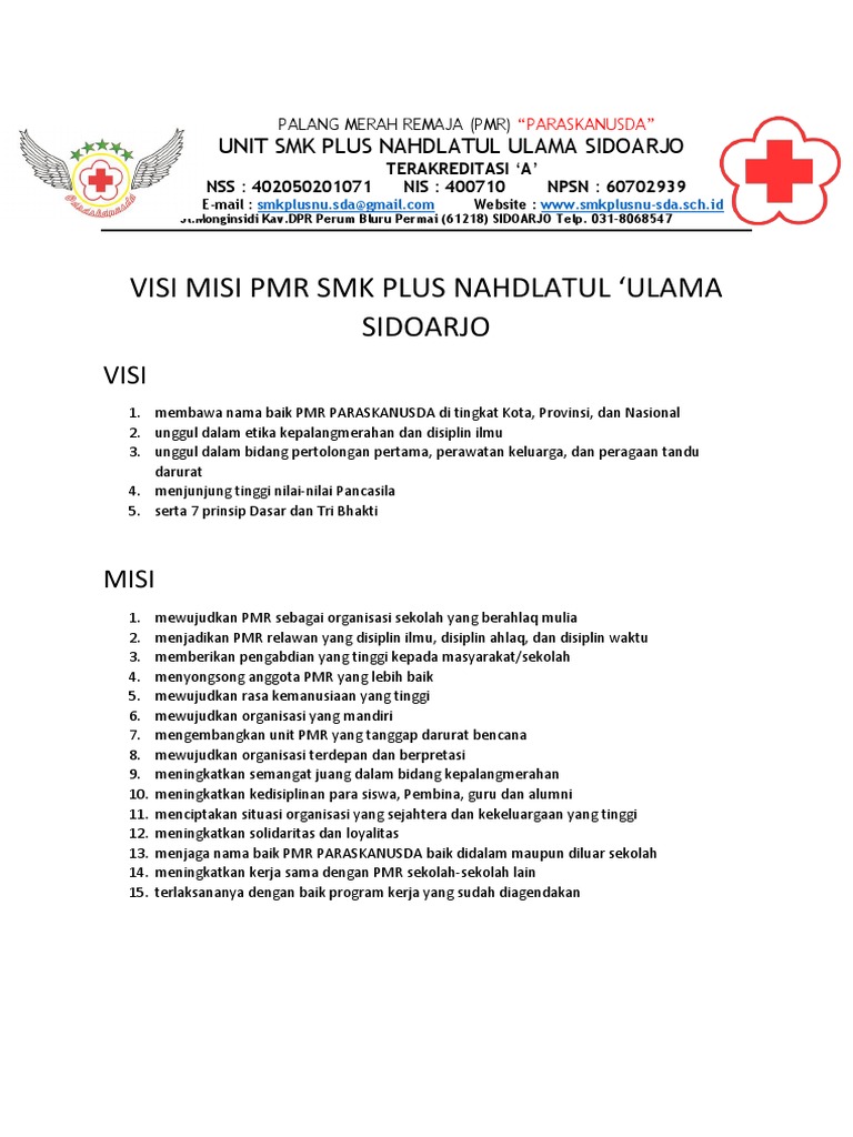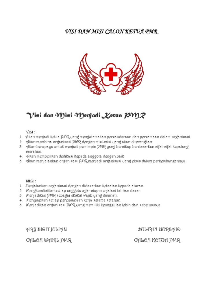 Contoh visi dan misi organisasi pmr. Hay sobat pmr dimanapun kalian berada. Berikut beberapa contoh visi misi berdasarkan jenis organisasi. Membantu dalam pengabdian dan merawat lingkungan. Sedangkan misi diartikan sebagai tindakan yang dilakukan agar visi dapat tercapai.