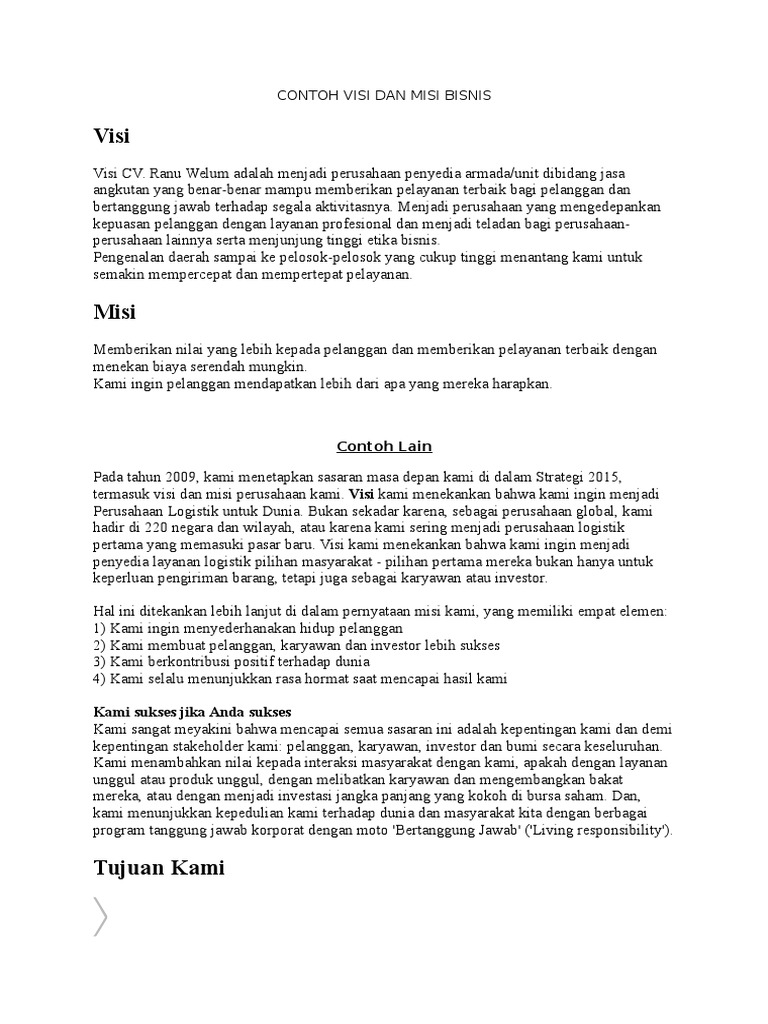 Contoh Visi Dan Misi Perusahaan Jasa Pengiriman Barang